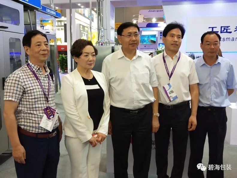 碧海公司董事長厲善紅、副總經(jīng)理王立、副總經(jīng)理劉紅珍向參觀領(lǐng)導(dǎo)介紹了此次展示的BH7500-200SQ鉆石包型無菌紙盒灌裝機,畢司長高興地說:“我們在國產(chǎn)奶業(yè)包裝設(shè)備前拍照留念,為國產(chǎn)設(shè)備站臺!”